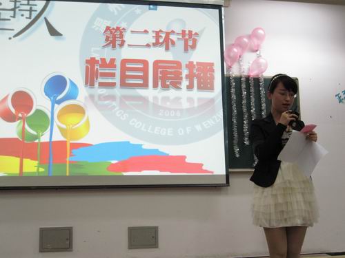 经过"自我介绍"、 "栏目展播"和"即兴主持"三个环节的层层筛选,17位选手给大家带来的不仅仅是听觉盛宴,还有无与伦比的视觉冲击。在"栏目展播"中,选手们或幽默风趣或慷慨激昂或婉约细致地赋予了栏目个性的风采,赢得了热烈的掌声。在即兴主持中,选手们随机应变的能力得到了很好的展现。选手们沉着应对、机智的回答博得了阵阵喝彩。