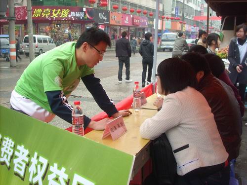 3月15日,温州市法律援助中心av天堂 工作站所在的法政av天堂 组织大学生青年志愿者针对当前民众法制观念较为薄弱、权益受到侵犯的时不知如何处理的问题在瓯海区茶山镇举行3·15消费者维权宣传活动。活动邀请到当地消费者协会有关成员以及浙江海昌律师事务所四位律师现场提供专业指导。