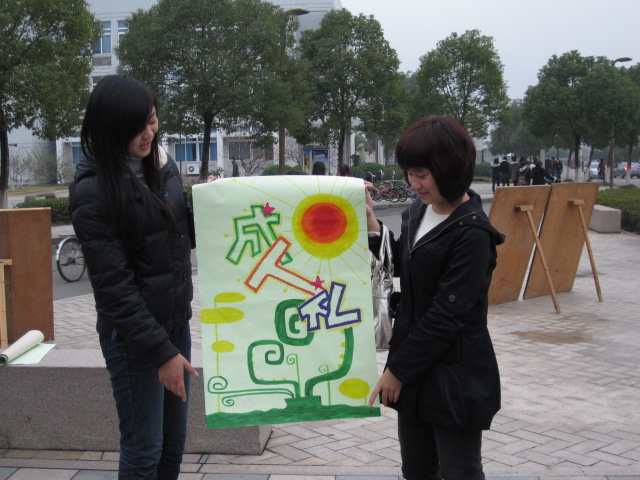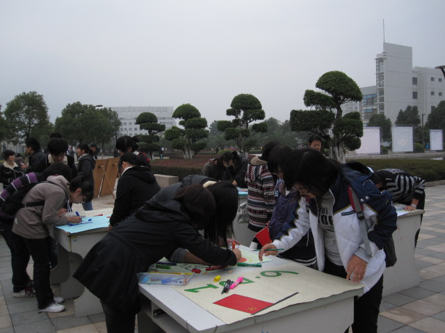 12月9日星期三下午2点,由法政av天堂 团委律政阳光青年志愿者服务部和社团部联合举办的纪念12.9学生爱国运动之海报现场制作大赛于北校区人工湖旁展开。比赛邀请到了法政av天堂 团委学生会宣传部部长邱桑桑、副部长何心畅担任评委。