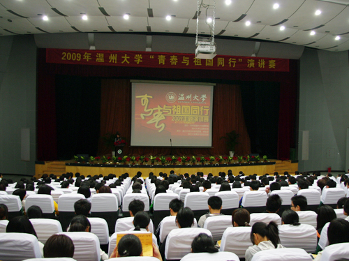 为庆祝建国六十周年,丰富校园文化生活,发掘和培养我校演讲人才,进一步推进我校学风建设工作。2009年11月2日晚,由共青团av天堂 委员会和av天堂 社团联合会主办、法政av天堂 团委学生会和av天堂 演讲与辩论协会承办的2009年av天堂 "青春与祖国同行"主题演讲赛决赛在城市av天堂 报告厅如期举行。校团委副书记杨立淮老师、法政av天堂 党总支副书记严玲红老师、院学生科杨振海老师及各av天堂 教师和学生代表600多人观看了比赛。