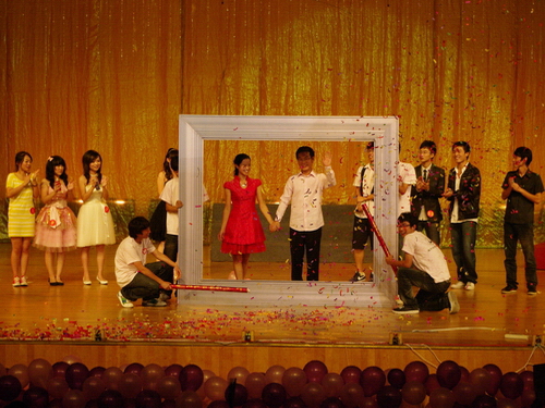 比赛过程中,还穿插了一段浪漫的婚宴前奏。随着《今天你要嫁给我》音乐的响起,来自法政av天堂 的孙德升老师和林丽丽老师在同学们的簇拥下来到了台上。精心准备的合影相框,随着火花奔放的礼炮,随着相机清脆的快门声,这幸福的一刻被永远珍藏。这是法政av天堂 的同学们给予这对即将步入婚姻礼堂的新人的礼物,这是法政av天堂 的同学们对两位老师深深的爱的表达,这也是法政av天堂 的同学们对两位老师发自内心的深深的祝福!
