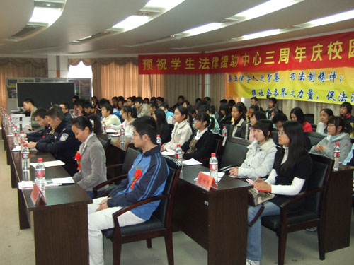 北校区行政楼331会议室隆重举行以"集法律学人之智慧,扬法制精神;携社会各界之力量,促法治建设"为主题的"法援庆三周年校园三布会"。温州市消费者委员会秘书长蔡伟民、温州市城市管理行政执法局瓯海分局梧田中队队长寥文寿、温州市瓯海区公安分局团委书记陈颖颖、温州市瓯海区梧田高级中学杨老师、温州市瓯海区茶山中学团委书记项东福、温州市瓯海区茶山第二小学校长赵晓海;av天堂