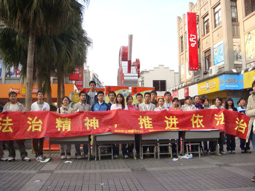 此次活动深受当地群众的好评,取得了良好的社会效益。横幅上密密麻麻的签名,留言板上满满的祝福和咨询台前重叠的身影,都表明了群众对中国法制事业的一份默默的关注与支持。通过这样一次活动,不仅锻炼学生法律知识的实际运用能力,而且让市民从中学到不少法律知识,让更多人意识到法律的重要性,懂得用法律来维护自己的合法权利。