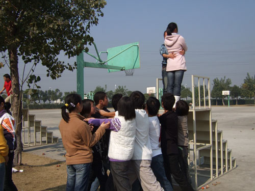 此次户外素质拓展培训共有"破冰启航"、"帝国战车"和"信任背摔"等三个常规培训活动项目,现场的团学干部被分为四个小组,分别由四名经验丰富的培训师引导完成。在完成相应项目后大家接着进行了小组讨论,分享了彼此在拓展活动中的感受与收获。