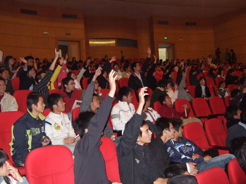 "学习十七大 建和谐法政"主题系列活动之"我们的热血青春"红歌会在南校区音乐厅隆重上演。出席的嘉宾有法政av天堂