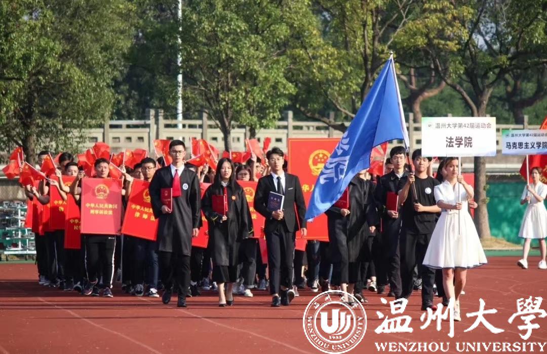 开幕式上,av天堂 代表队的方阵高举展示宪法和几十部法律的牌子,迈着坚定的步伐走向主席台。前排领队身穿法官、检察官、律师、公务员、企事业单位管理人员等职业的服装,展现av天堂 培养法学专业人才和管理人才的特色。同学们还合唱歌曲《我和我的祖国》,表达了av天堂 学子的家国情怀。