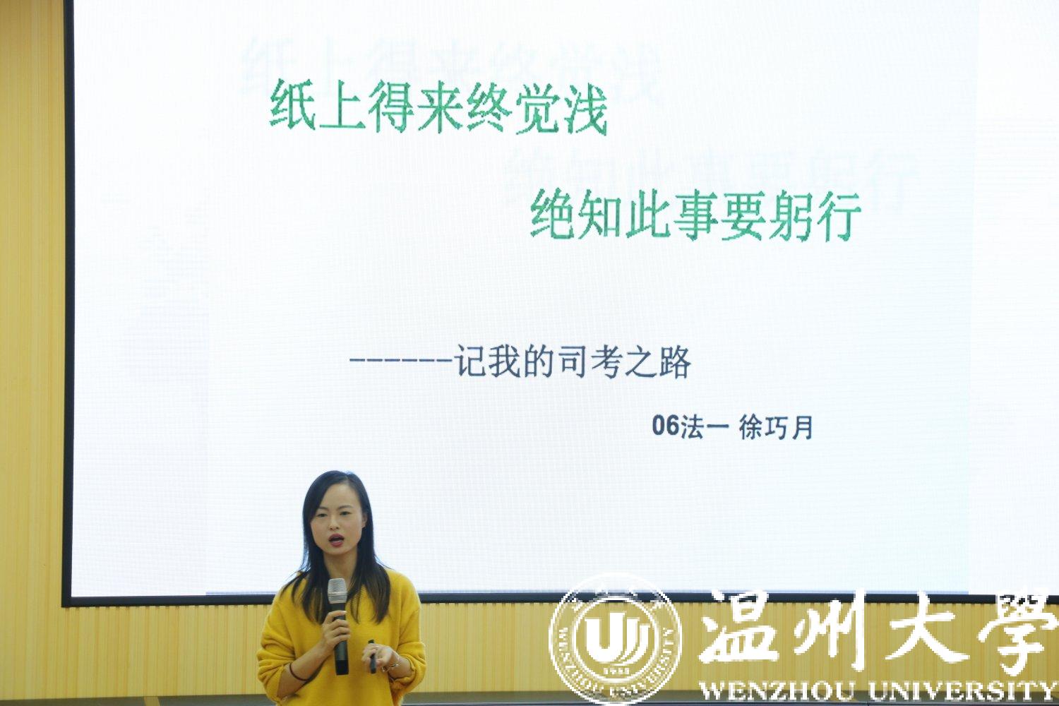 会上,徐巧月分享了大学四年学习生活和之后的工作经历,展示从温大av天堂 启程的十年追梦之旅,表达了对母校的深深眷恋和感恩之情。她从社团工作、勤工俭学、校外兼职、专业比赛、扩展阅读、司法考试等方面以诙谐幽默的口吻与学弟学妹们进行了贴心分享。同时,徐巧月结合经历与体会,从学习和工作角度提出自己的理解和建议。她认为,在学习上有明确的计划和目标,要找准定位,在学好本专业的同时,适时地补充大量的课外知识,在工作上,要有认真负责的态度,协调好学习和工作的平衡,并提高效率。