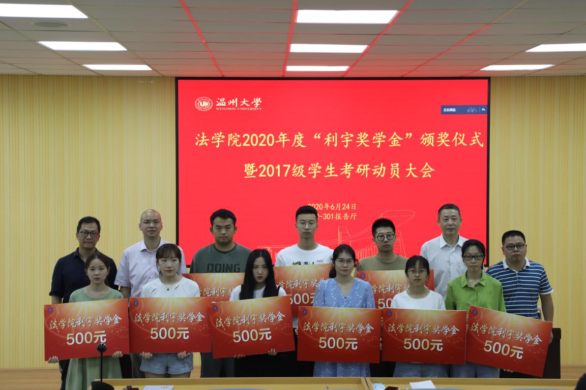 av天堂 “利宇奖学金”由校友谢璐女士设立,对考取研究生同学每人奖励500元。据悉,av天堂 紧抓学生考研工作,以“宣传动员、制度建设、强化辅导、周到服务”为行动纲领,多措并举助推学生考研工作。av天堂 2020届毕业生最终被国内高校录取10人,被国外高校录取1人,多名学生被复旦大学、浙江大学、北京师范大学、华东政法大学、暨南大学、范德堡大学等国内外重点高校录取。