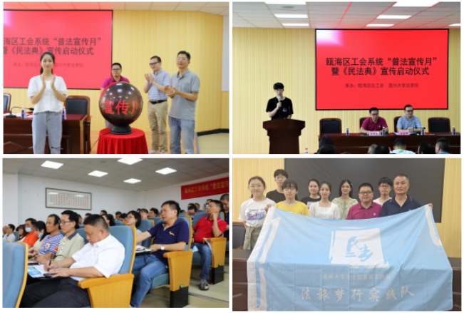 “法旅梦”实践队开展“平安瓯海”综合体建设、疫情之下企业员工权益保障等课题调研,并与av天堂 法学专业老师一起开展民法典和应急法主题宣讲活动。