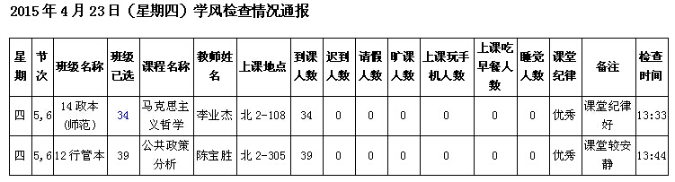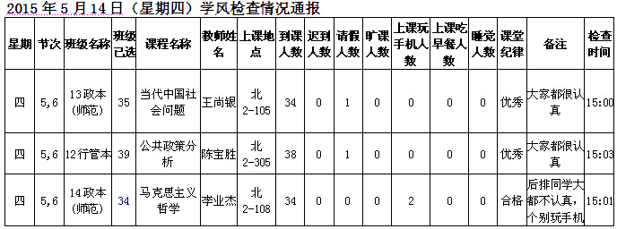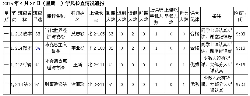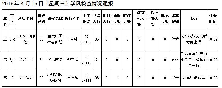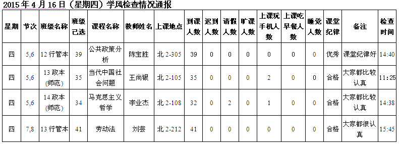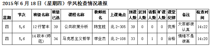 1.优秀,人员到齐,纪律良好;2.合格,人员到齐或有请假,纪律一般;