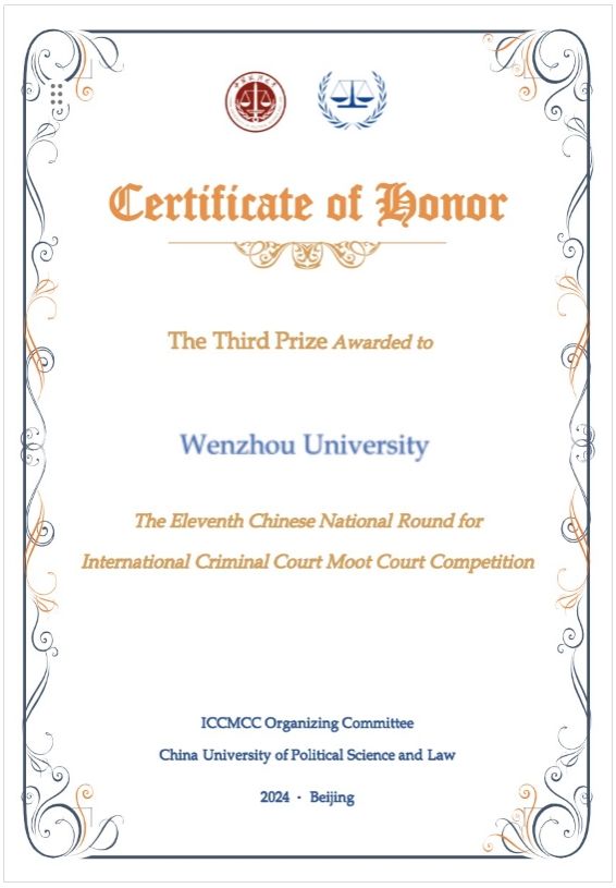 2024年3月24日,2024年国际刑事法院模拟法庭竞赛(英文赛)(以下简称“ICC英文赛”)落下帷幕,av天堂 代表队荣获全国三等奖。