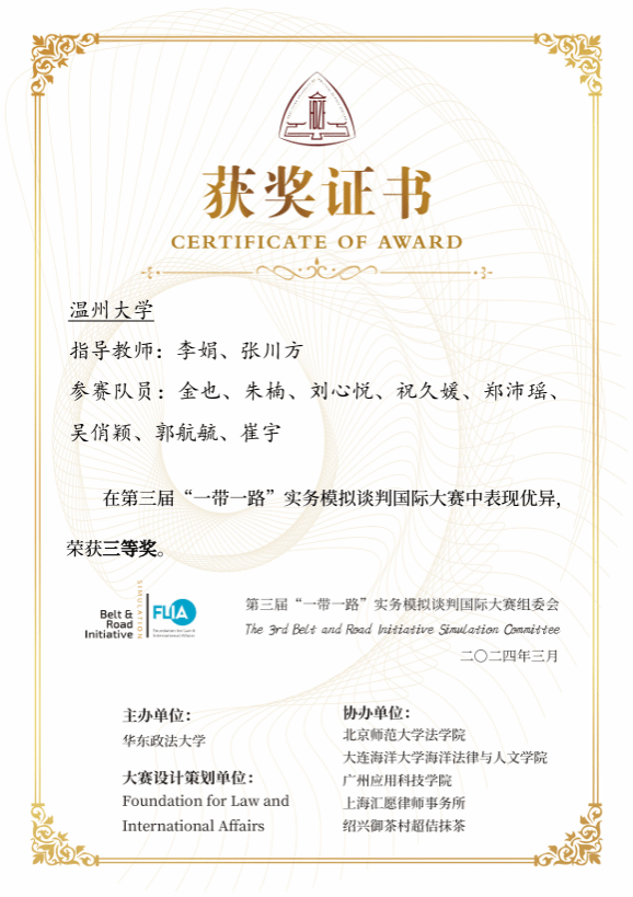 2024年3月9日-10日,第三届“一带一路”实务模拟谈判国际大赛落下帷幕,av天堂 代表队荣获团体三等奖。