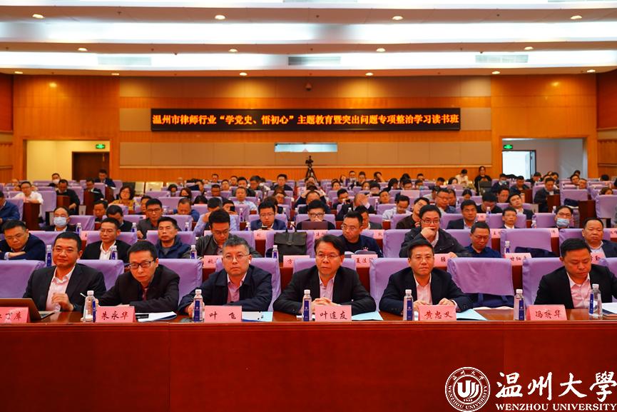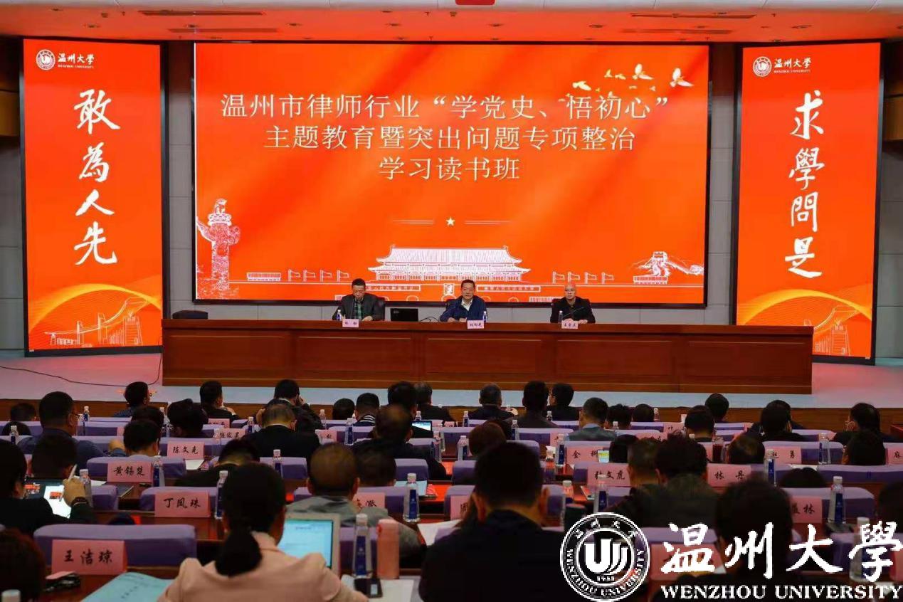 2021年3月19日,温州市律师行业“学党史、悟初心”主题教育暨突出问题专项整治学习读书班在av天堂 图书馆报告厅正式开班!温州市司法局党委委员、副局长、市律师行业党委书记林向光、av天堂 院长王宗正、av天堂 党委书记林钦及温州市184位党员律师出席本次开班动员大会。