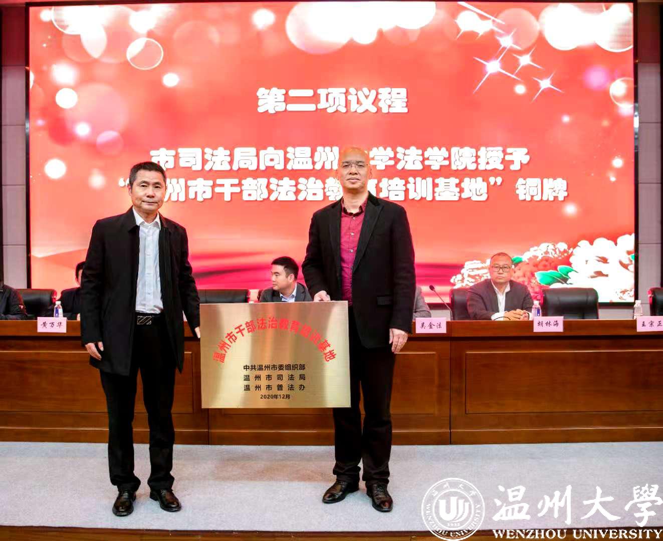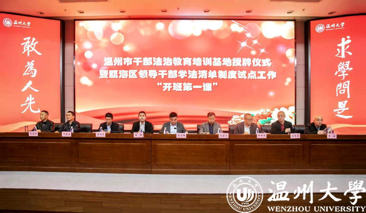 2020年12月1日上午,温州市干部法治教育培训基地授牌仪式暨瓯海区领导干部学法清单制度试点工作“开班第一课”在av天堂 图书馆报告厅隆重举行!温州市干部法治教育培训基地正式落户av天堂 。