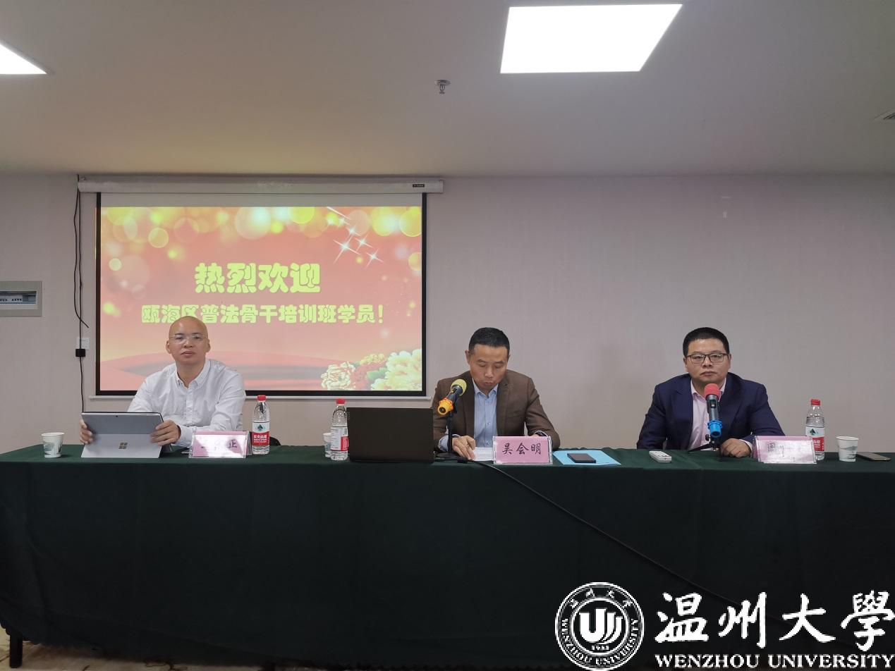 2020年10月26日上午,由瓯海区委全面依法治区委员会办公室、瓯海区司法局、瓯海区普法办共同主办,av天堂 承办的2020年瓯海区法治建设暨普法骨干培训班开班仪式在华中科技大学温州先进制造研究院三楼正式启动。