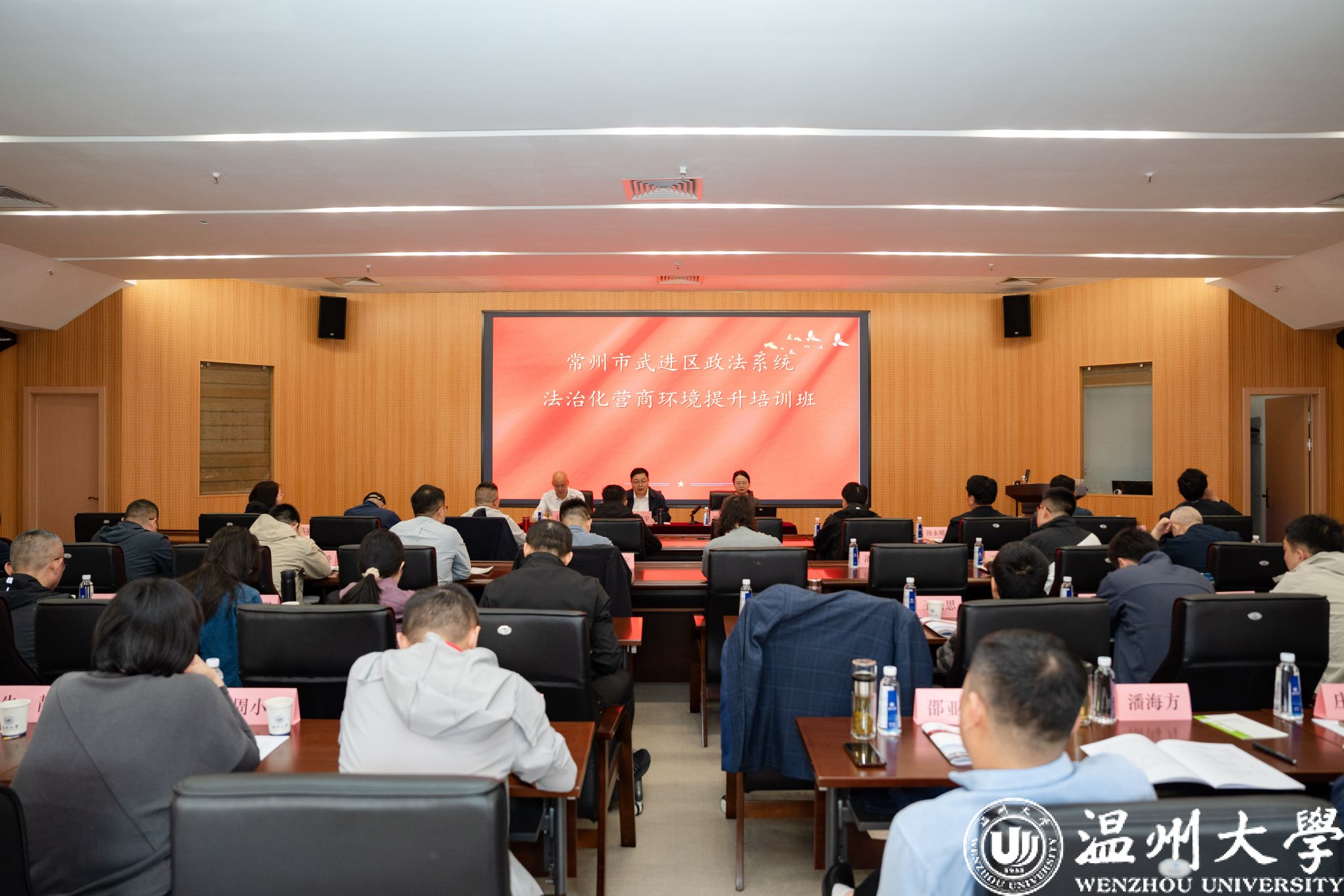 2025年4月14日,为深入贯彻习近平新时代中国特色社会主义思想,弘扬温州“敢为人先、商通四海”的精神,武进区政法系统参训学员齐聚av天堂 ,参加全区政法系统法治化营商环境提升培训班,武进区政法系统38名学员、av天堂 院长王宗正教授、av天堂 培训中心主任谢丽珍老师出席开班仪式。