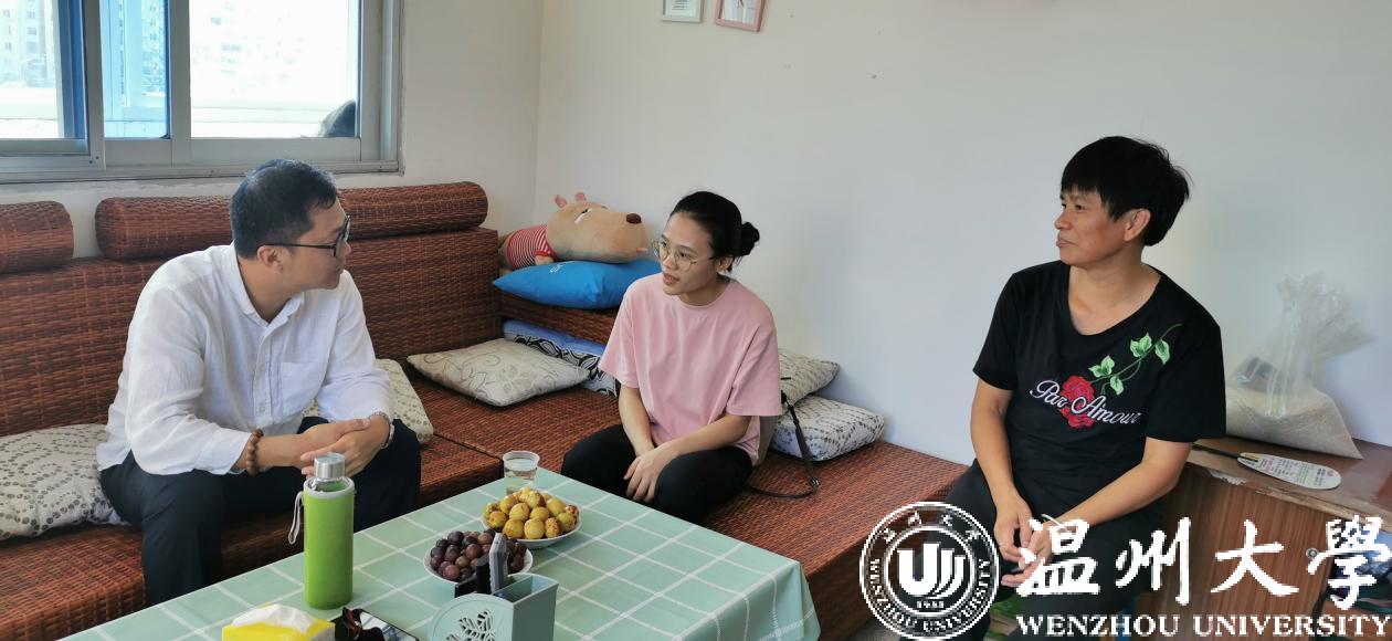 本次受访学生也纷纷表示受益匪浅,他们感受到了社会与学校对她们的关爱,让她们更有自信心去学习和生活。赖美真同学表示:“我会在接下来的学习中,更加努力备考,争取顺利通过各项考试!”周圣霏同学也感慨道:“我会认真学好法学专业知识,积极参加各项活动,提升自己的综合素质,不辜负社会、学校与家长的期望!”受访学生家长向前来家访的老师们连连致谢:“感谢学校对孩子的关心与鼓励,能从温州来到我们家,我们父母很意外也很感动。”