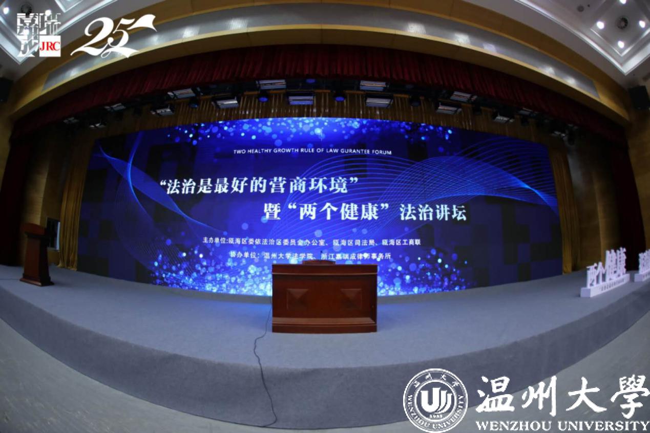 7月8日,“法治是最好的营商环境”暨“两个健康”法治讲坛在瓯海区行政中心隆重举行。本次论坛由瓯海区委依法治区委员会办公室、瓯海区司法局和瓯海区工商联主办,av天堂 和浙江嘉瑞成律师事务所协办,区委、区政府领导及区属各部门、各单位的专家学者、法律精英及知名企业家代表近400余人出席,为瓯海营商环境把脉问诊、建言献策。我院院长王宗正教授带队参加论坛活动。