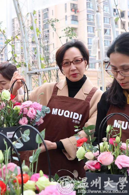 活动现场,经验丰富的花艺师现场介绍鲜花常识,从选择与购买,到鲜花的保养与摆放,再到插花艺术的讲解,在露天的花房里,花香的浸润下,四处洋溢着生机与浪漫,倍感舒适和惬意。女老师们对插花艺术兴趣极高,在花艺师的指导下,开始尝试亲手制作插花作品,与各种鲜花来了次亲密接触。普通的花叶、枝条,经过大家精巧的修饰与加工之后,变成了色彩搭配协调,花束错落有致,艺术感较强的插花作品。