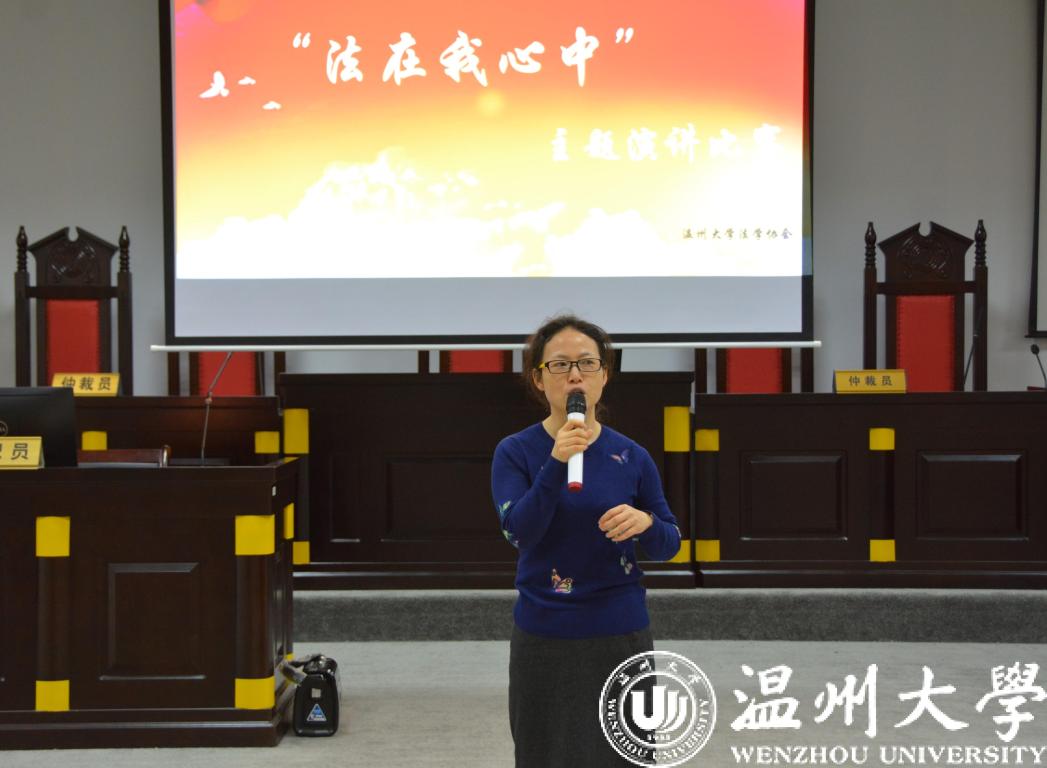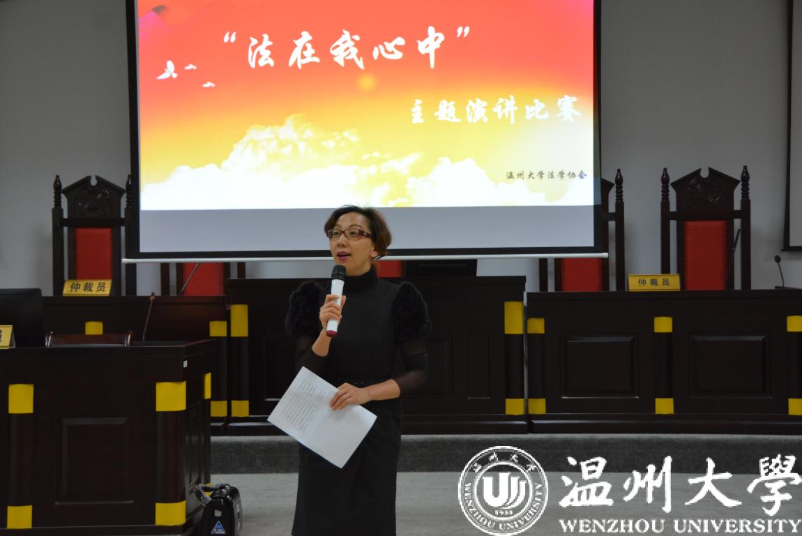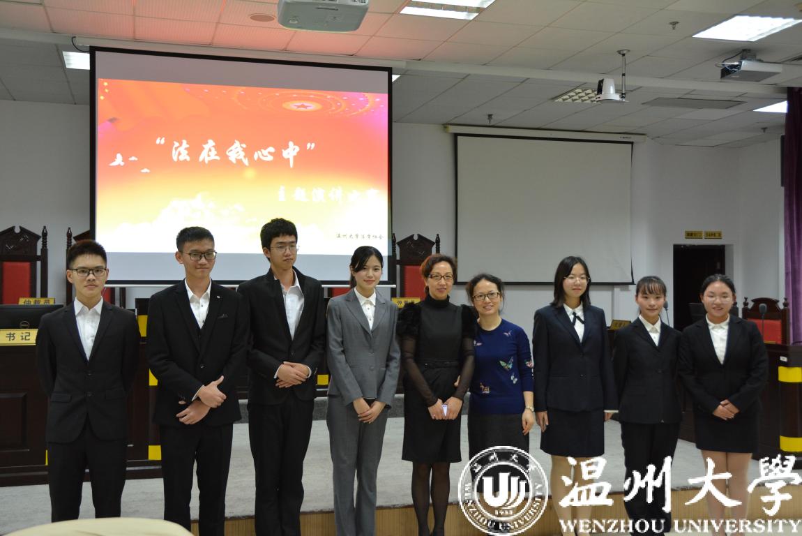 12月4日是国家宪法日,同时12月也是国家普法宣传月。在我国第五个国家宪法日来临之际,由法政av天堂 学生会、校法学协会、法律援助工作站联合举办的“法在我心中”主题演讲比赛决赛在模拟法庭隆重开赛。法政av天堂 党总支副书记严玲红老师、法学系副主任谢丽珍老师、学生科周骞老师担任此次比赛评委,决赛共有来自全校的11位选手参加。