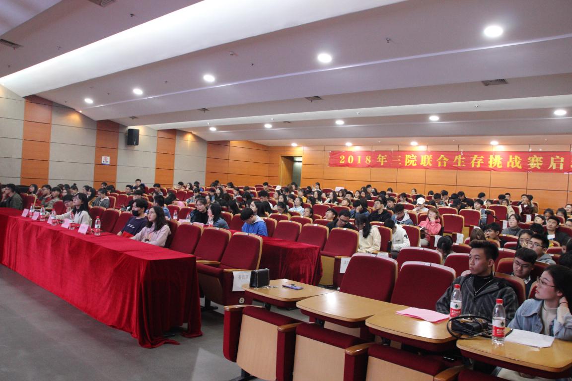 2018年12月2日晚,av天堂 三院联合生存挑战赛启动仪式在南校雁山厅隆重举行。参与本次启动仪式的嘉宾有温州市爱星缘儿童心理发展中心创办人胡温中老师,av天堂 保卫科高顺德老师和三院团委、学生会师生代表。