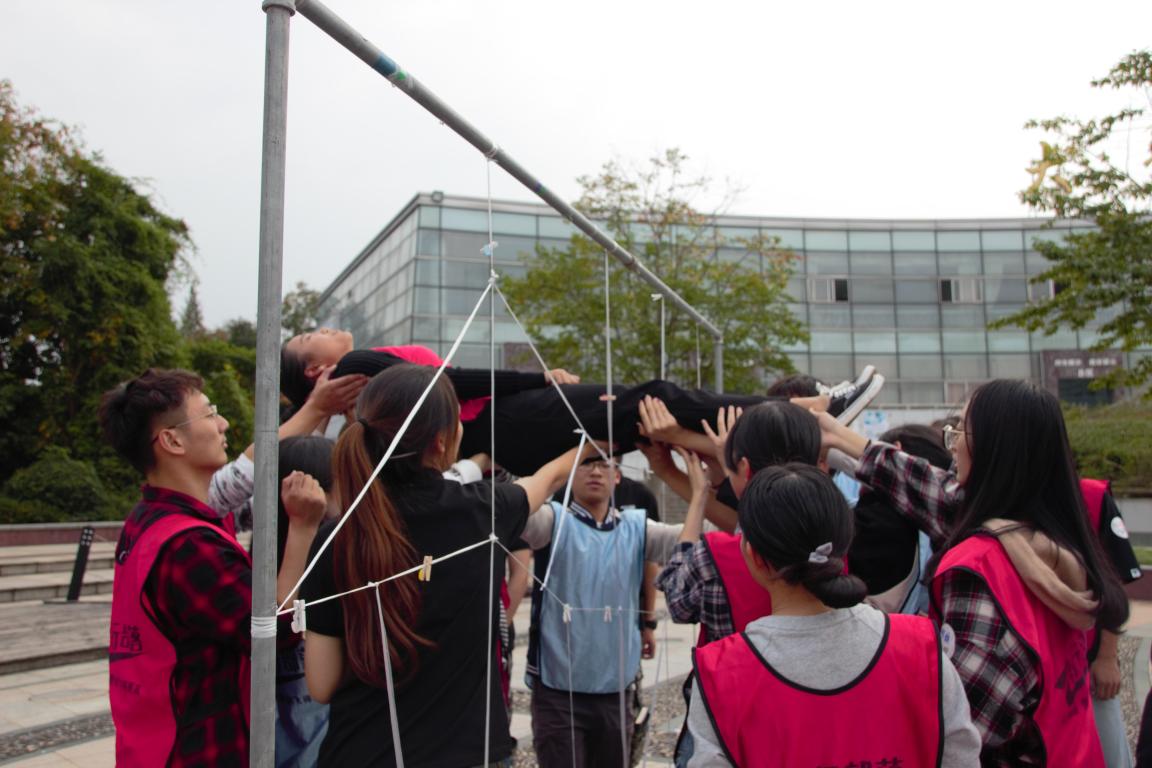 阳光和煦,秋风徐徐。本次团干培训迎来了av天堂 飞行部落的户外培训,同学们经历了一场智慧与体力的较量。培训在飞行部落整齐而又气势非凡的问候中拉开帷幕。全体成员被随机分成四队后,便开始热身活动。在激烈的背景音乐下,同学们按照指定数字抱团,“桃花朵朵开”项目迅速炒热了现场的气氛。随后,各队分开完成“破冰团建”任务,期间同学们各抒己见,群策群力,为自己的队伍设计队名、队徽、队形等。紧接着,四队成员兵分两路体验不同项目。无论是在培训师干扰下稍显紧张的“卡片解码”项目,还是考验速度与战略的“数字翻牌”项目,都同样精彩。队员们配合默契,团结一致,也时常围聚在一起探讨战略、交流经验。在“信任背摔”项目中,背摔者给予成员们最大的信任,把自己最没有安全感的部分交给承接者,在彼此的鼓励下,队员们克服了恐惧,顺利地完成了背摔。培训最后,大家也相互分享了本次培训的感受,团结一心,其利断金。