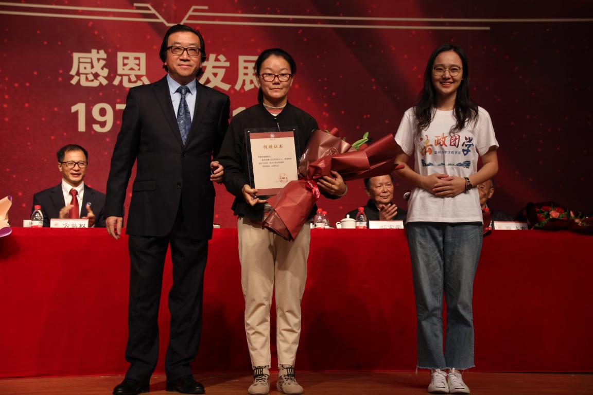 随后,由在校生代表向为av天堂 教育事业做出卓越贡献的退休老教师代表献花、向翁av天堂 校友代表献花;王宗正院长代表av天堂 接受杰出院友谢璐捐赠的50万元用于av天堂 学科发展和人才培养,av天堂 副校长蔡曙光向杰出院友谢璐颁发捐赠证书,随后在校生代表向院友谢璐献花致敬。上午庆典在合影留念中圆满结束。
