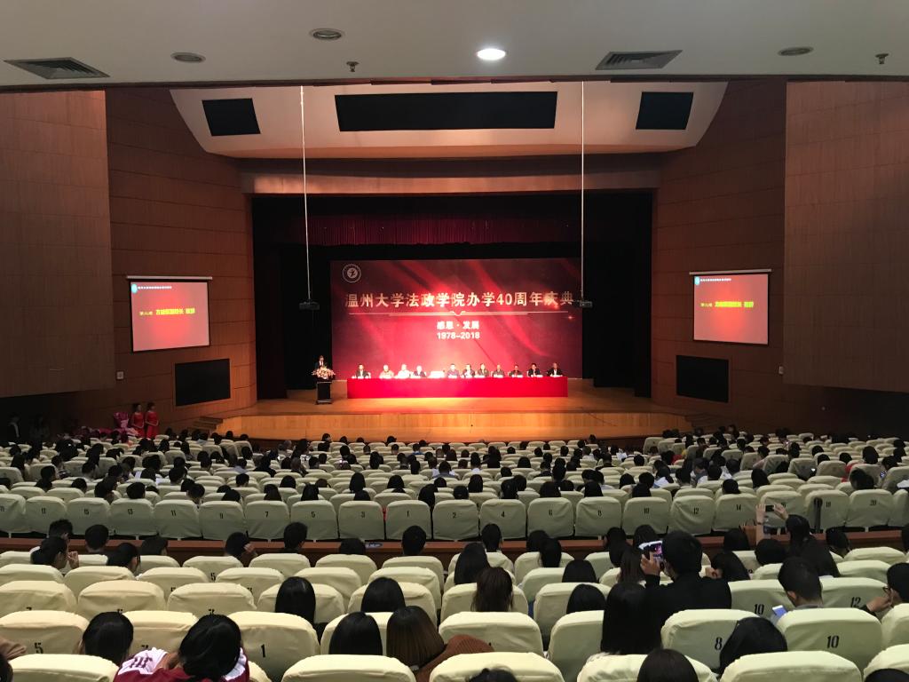 金秋十月,硕果飘香。2018年10月20日上午,怀着喜悦的心情,230多名来自全国各地的温大法政院友和800多位在校师生齐聚高教园区av天堂 育英大礼堂,共同参加av天堂 法政av天堂 办学四十周年庆典。莅临av天堂 办学四十周年庆典的领导有正校级领导、原政治科教师周湘浙老师,校党委委员、副校长蔡曙光老师,校党委委员、副校长方益权老师,参加庆典的还有法政av天堂 历任av天堂 领导和曾经在av天堂 工作过的教师和各行各业的院友以及全体在校师生。典礼由av天堂 党总支书记林钦主持。