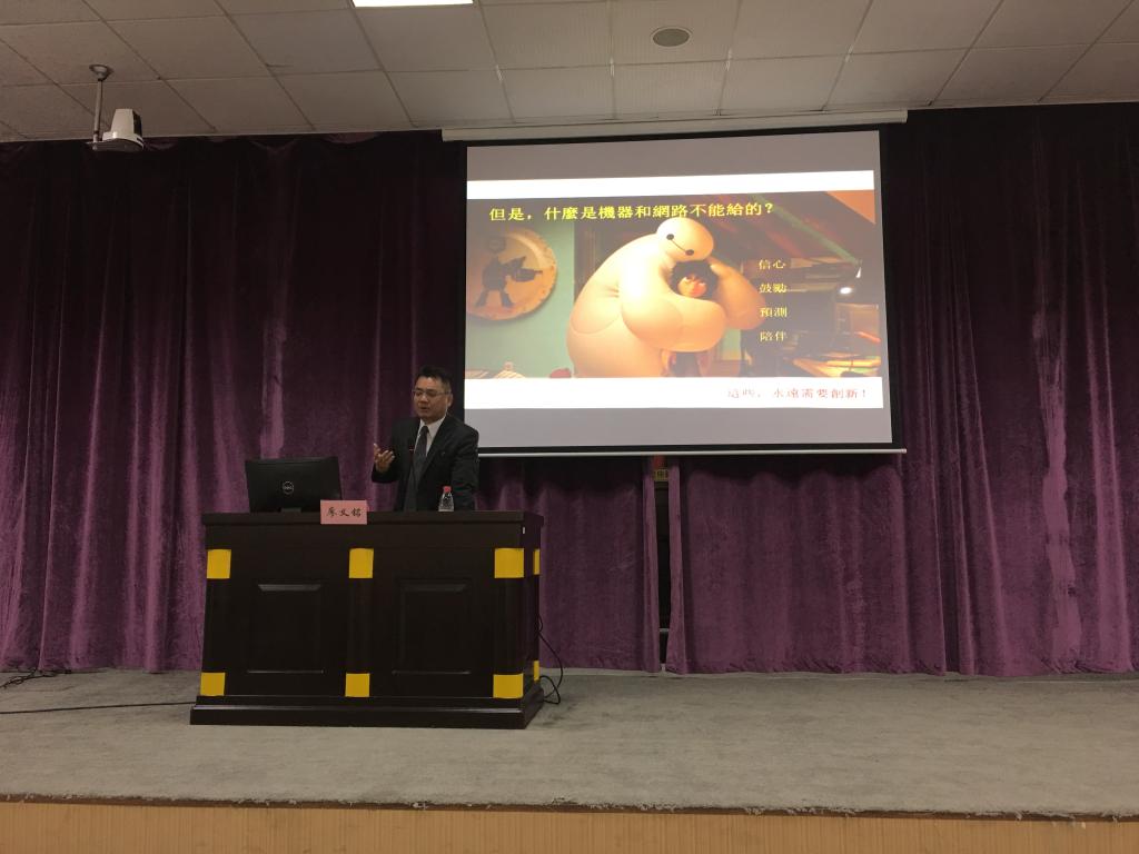 廖义铭教授以社会纠纷的解决作为切入点,引出“法律人”的概念,分析当前法学学科的价值和内涵,法律人才培养的目的及意义,并就当前人工智能的发展现状以及带给法律行业的冲击作出论述,提出“正义是盲目的”、“法律是思维和逻辑的演进”、“人工智慧重点不是人工而是智慧”等新观点,给听众以新的启迪。在讲演最后,廖义铭教授就我校高教园区派出庭的建设模式作出高度赞扬,认为这是未来法学人才培养的新方向,是值得全中国乃至全世界所借鉴的一种新的人才培养模式,并以“太极阴阳”的理论阐述了中华文化的博大精深,大陆台湾的同根同源,引起了在座观众的共鸣和阵阵掌声。
