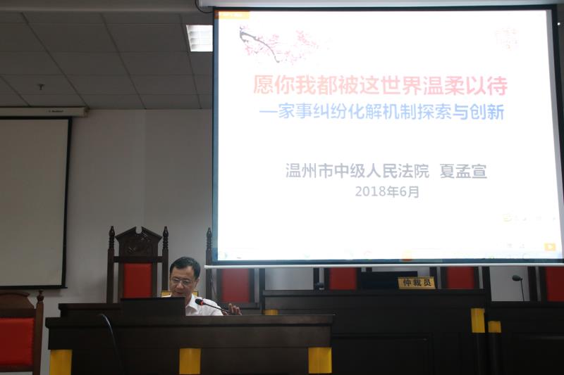 2018年6月20日下午,校文科实训中心和法政av天堂 实验实训中心邀请温州市中级人民法院民一庭庭长夏孟宣为我校师生作了一场生动的实务讲座,介绍全国家事审判方式和工作机制改革试点单位——温州市中级法院家事审判改革试点经验。夏庭长以“家”字开篇,用详实的数据和发生在全国的典型案例,结合温州市法院审判实践分析了当前我国婚姻家庭纠纷的现状、成因,以及所带来的社会问题,在此基础上,介绍了温州市中级人民法院家事审判2年多以来的经验和做法,包括转变家事审判理念、搭建柔性化解纠纷平台、家事审判专业化、家事纠纷诉前调解程序、离婚案件冷静治疗期制度、建立心理疏导干预机制、实行子女权益保护最大化原则、创设离婚证明书机制等,这些做法在全国都具有创新性,已经取得了良好的社会效果,受到了社会广泛的关注。讲座的最后,夏庭长还结合青年大学生的婚恋实际,提出要把握现在、善待家人、责任担当、珍惜缘分、规划未来等要求和期待。