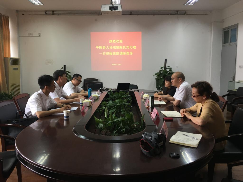 5月9日下午,平阳县人民法院院长刘万成一行来我院考察交流,王宗正院长、严玲红副书记、法学系何平主任等与来访嘉宾进行座谈,共商高校-实务部门合作事宜。