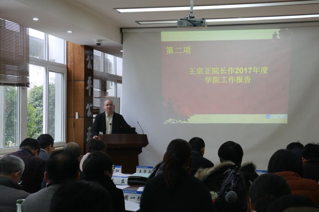 首先,院长王宗正做2017年院长工作报告,报告指出2017年里av天堂 各方面取得了一些优异的成果,如获得了法政av天堂 历史上第一项国家社科基金重大招标项目,我院教师拿到了2017年全国教育规划基金项目等。但肯定成绩、坚定信心时,也应该清醒认识到av天堂 提升发展中的所存在的不足与挑战。同时,布置了2018年的工作规划,全体教师需化压力为动力,推进av天堂 各项事业的新一轮发展。随后,工会委员宾雪花老师作2017年度av天堂 工会工作报告,报告详细回顾了工会关心全院教职工日常生活和组织文体活动做得一切努力和尝试。且对av天堂 领导和全体老师对工会工作的配合和支持予以衷心的感谢。办公室主任朱美宁对av天堂 2017年经费使用做了详细阐述,副院长缪心毫对法政av天堂 的各项提案办理情况进行了说明。