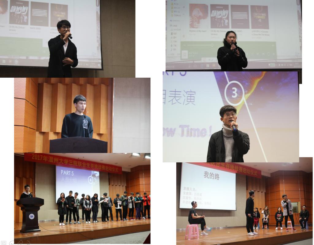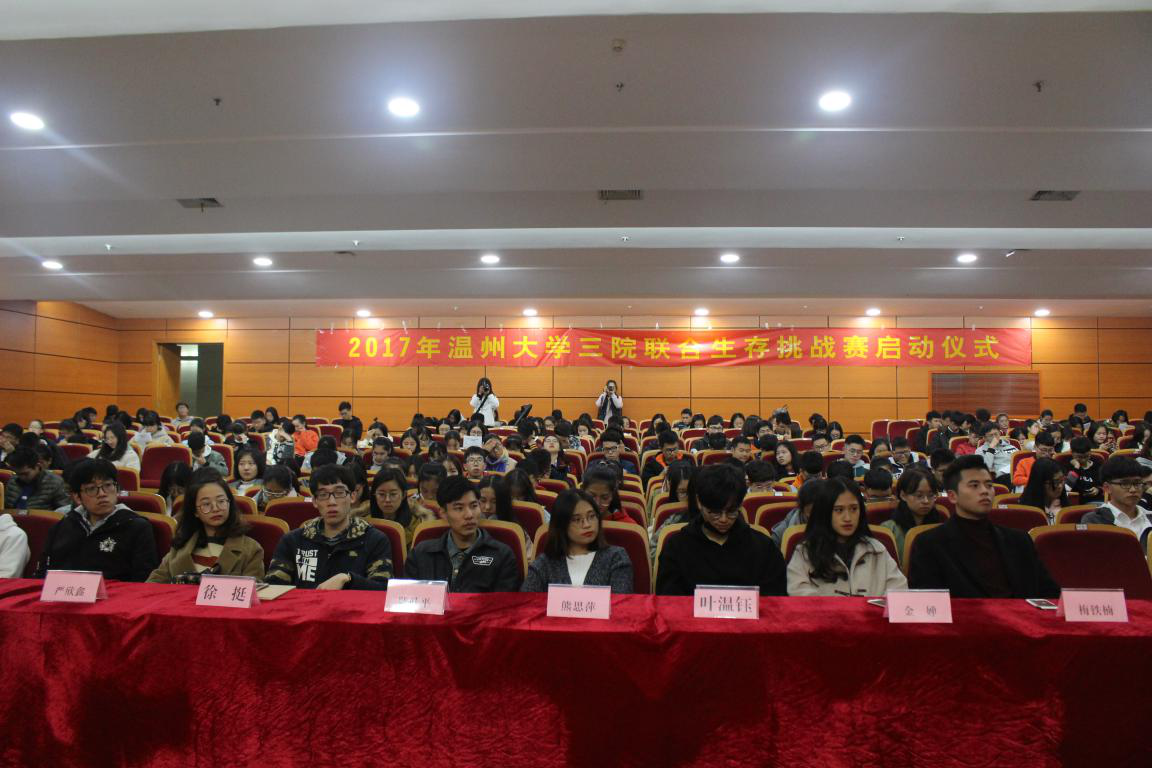2017年12月1日晚,av天堂 三院联合生存挑战赛启动仪式在南校雁山厅隆重举行。参与本次启动仪式的嘉宾有av天堂 保卫科高顺德老师、av天堂 校团委组织部部长叶温钰、av天堂 商av天堂 团委学生会主席熊思萍、商av天堂 团委学生会副主席陆叶平,av天堂 数电av天堂 团委副书记徐挺、数电av天堂 学生会主席严欣鑫,副主席许若源、俞锴磊,av天堂 法政av天堂 团委副书记金婵、法政av天堂 学生会主席梅铁楠。
