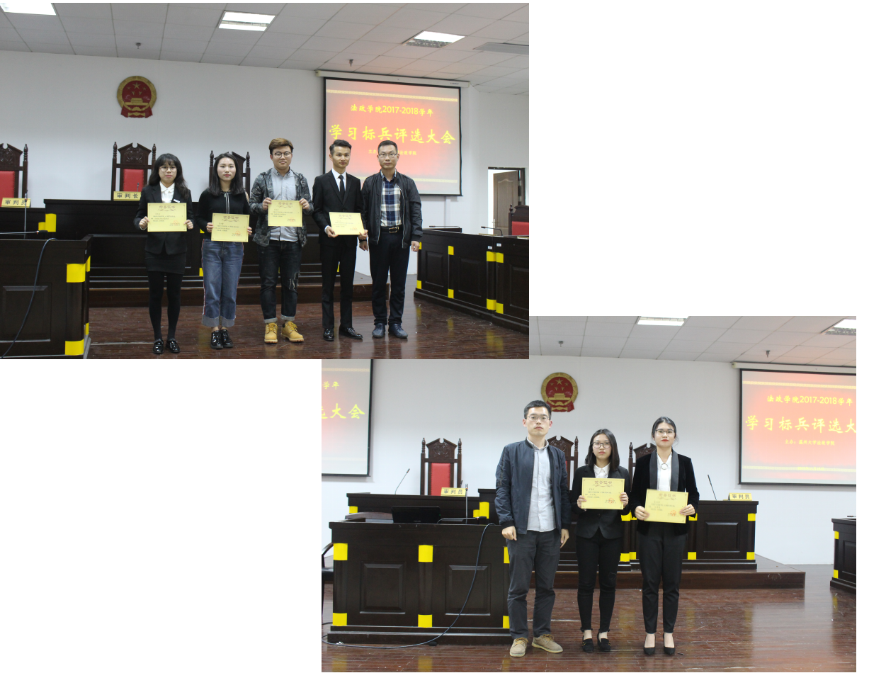 2017年11月15日晚,av天堂 法政av天堂 2016-2017学年学习标兵评选大会在模拟法庭正式举行。参加本次学习标兵评选大会的候选人有14法三朱怡静、15法二朱佳敏、15政教叶必成、15行管张剑宇、16法二倪明雪、16法四宋卓君。担任本次评选的评委有法政av天堂 学生科副科长、团委书记孙德升老师,法政av天堂 学生科魏厚钱老师,法政av天堂 学生会主席团成员章方正、祝瑞、颜林杰。