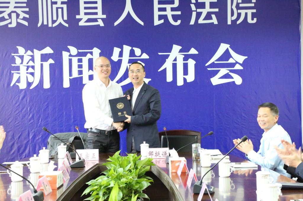 11月10日,在王宗正院长的带领下,郑国栋副院长、法学系主任何平、副主任谢丽珍等老师赴泰顺县人民法院调研。泰顺县人民法院院长邹挺谦、常务副院长沈纪顺等出席了签约仪式和座谈会。