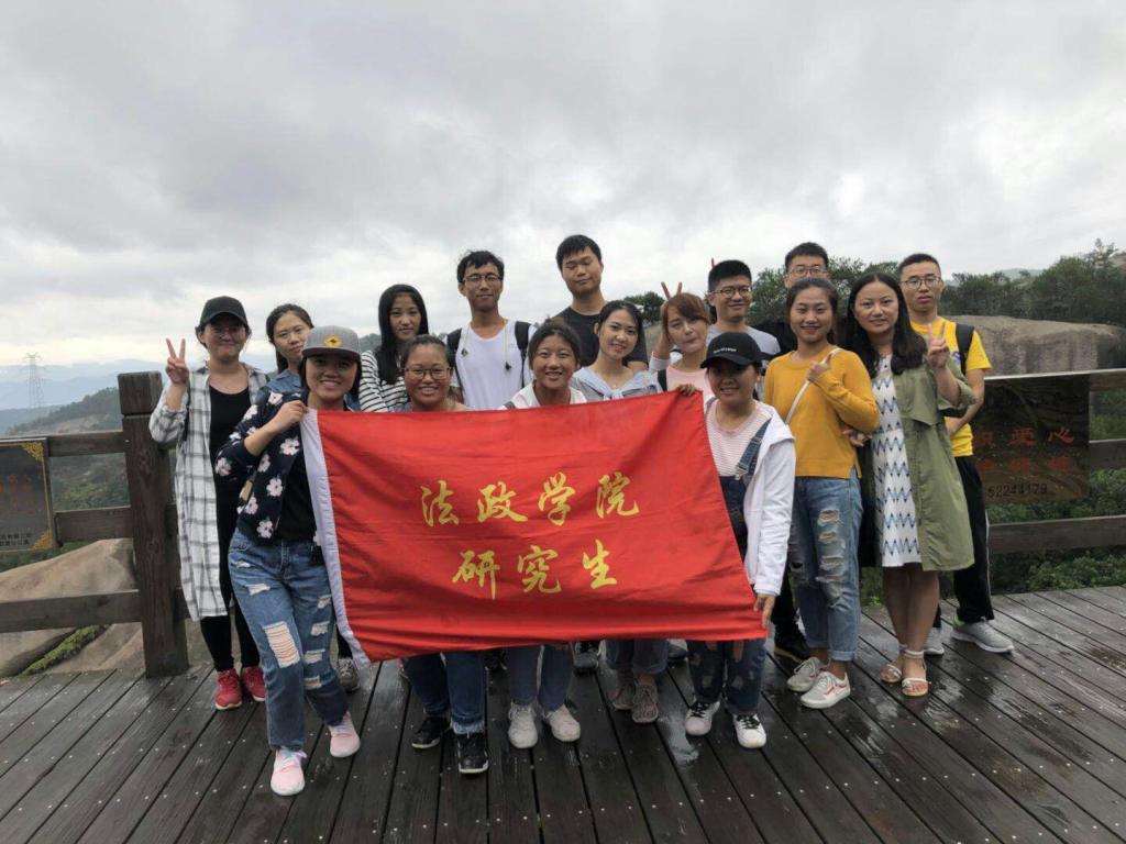 十月十四日,天微凉,细雨。法政av天堂 研一新生在院研会主席和文体部部长的带领下,开启了攀登大罗山的序幕。