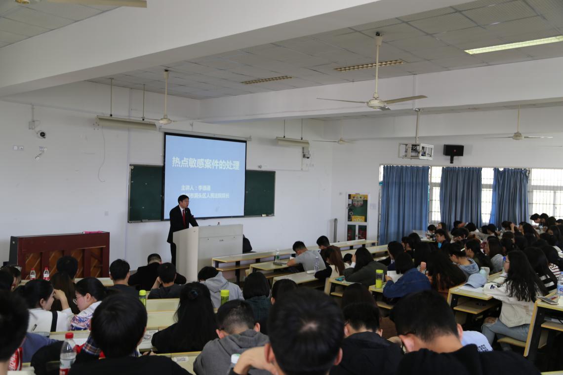 法律文化宣传月"作了题为《热点、敏感案件的处理》的专题讲座。