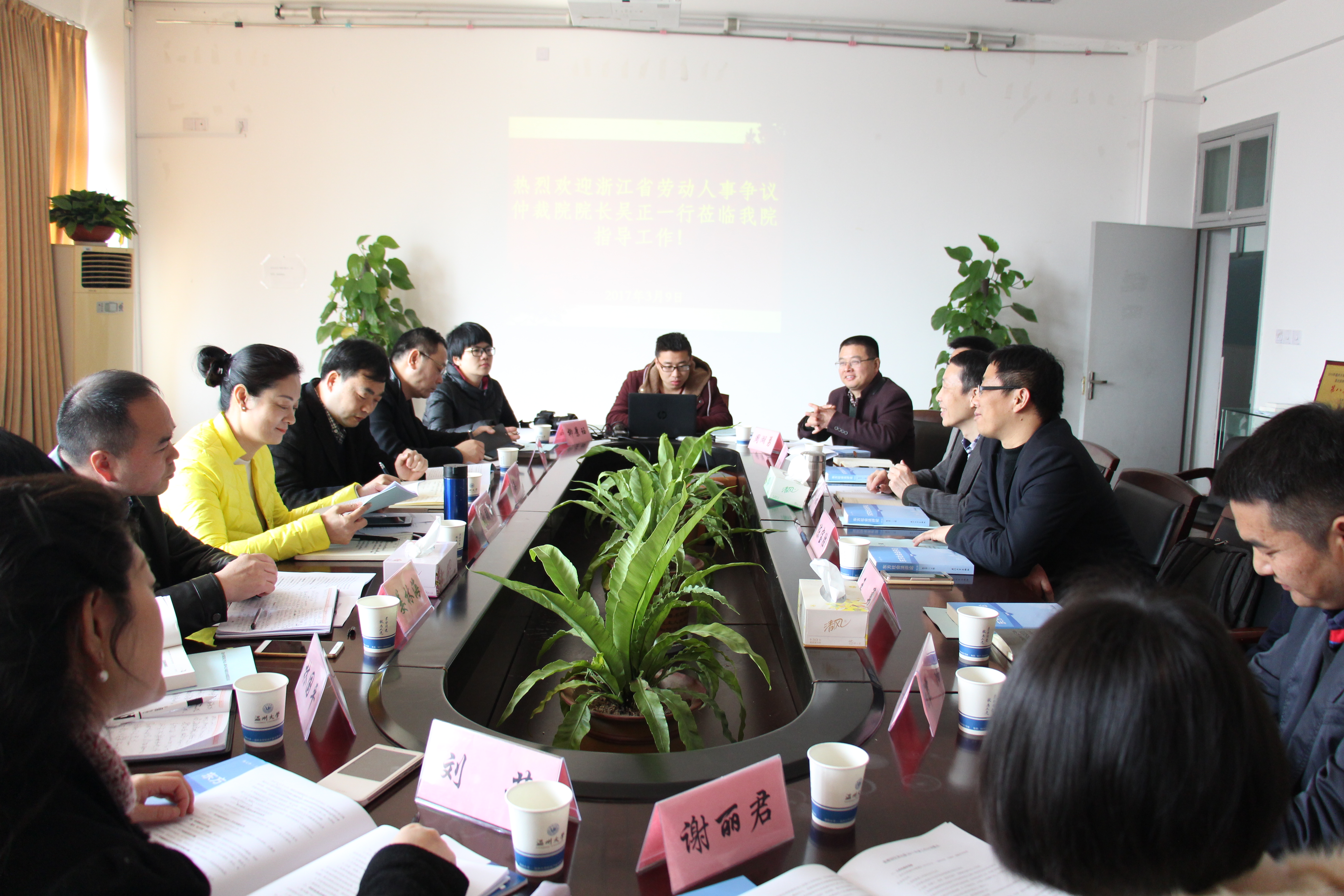 3月9日上午,浙江省劳动人事争议仲裁院院长吴正一行视察瓯海区设在我校的劳动人事争议仲裁委员会高教园区派出庭建设运行情况。温州市人力社保局纪检组长胡凯生、区政协副主席、人力社保局局长陈继林、av天堂