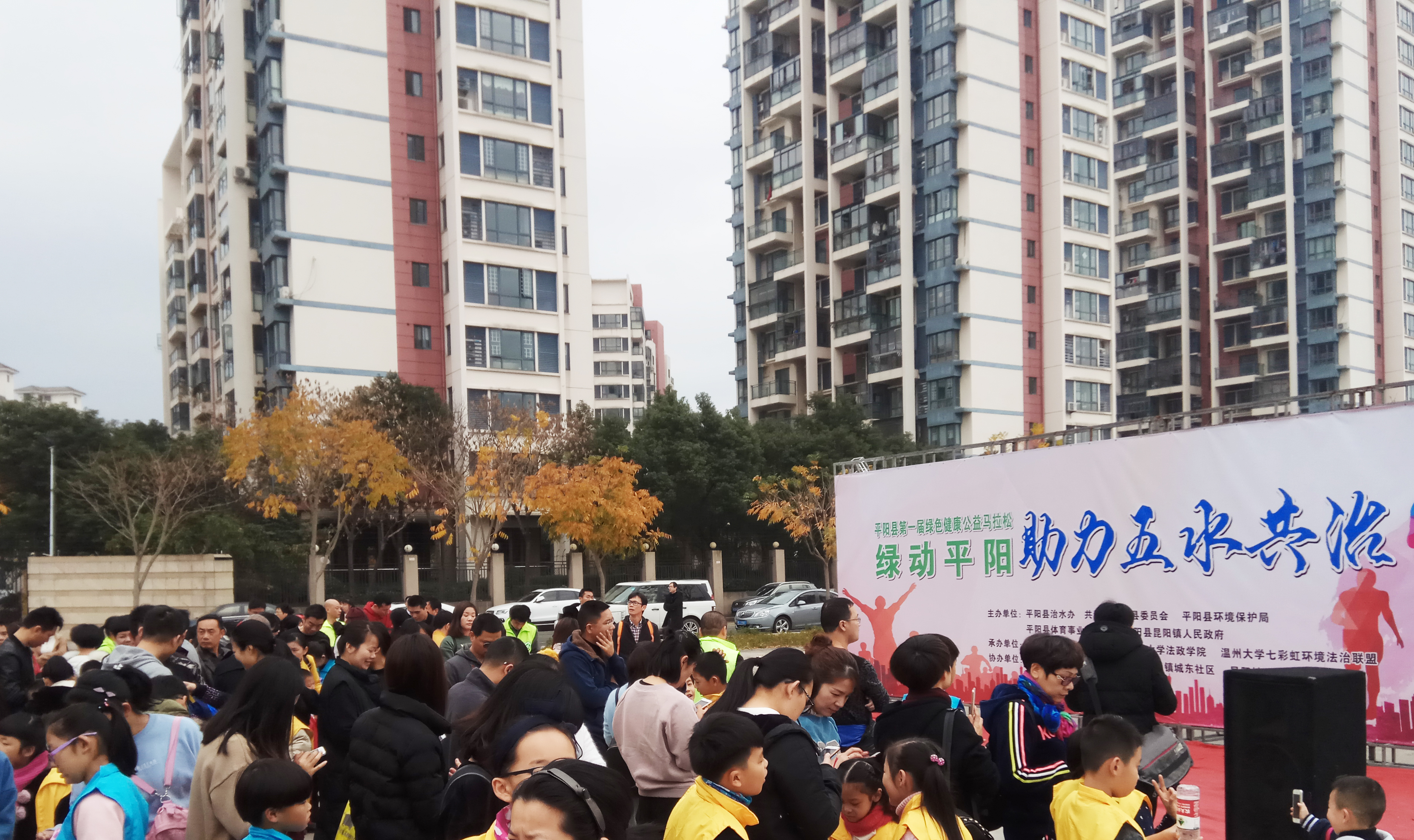 2017年1月1日上午,由av天堂 法政av天堂 七彩虹环保社团承办的平阳县第一届绿色健康公益马拉松活动在温州市平阳县平瑞塘河昆阳镇段成功举办。平阳县委办副主任林初潮、共青团平阳县委副书记陈利少、平阳县环保局环境宣教中心主任林珺、平阳县环保志愿者协会会长董希战、av天堂 法政av天堂 团委老师白昌科等嘉宾莅临活动现场,来自平阳县社会各界的200组家庭参赛队伍共500多人参加本次马拉松活动。