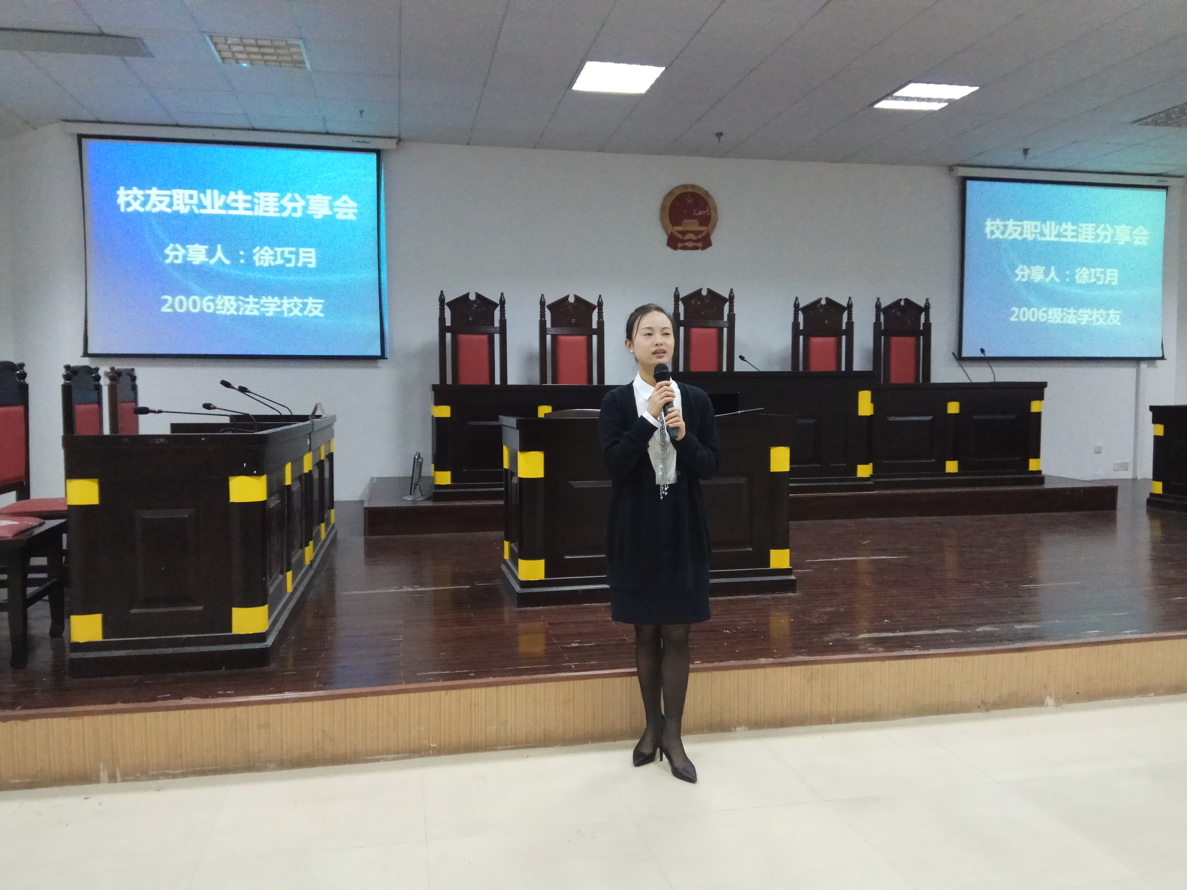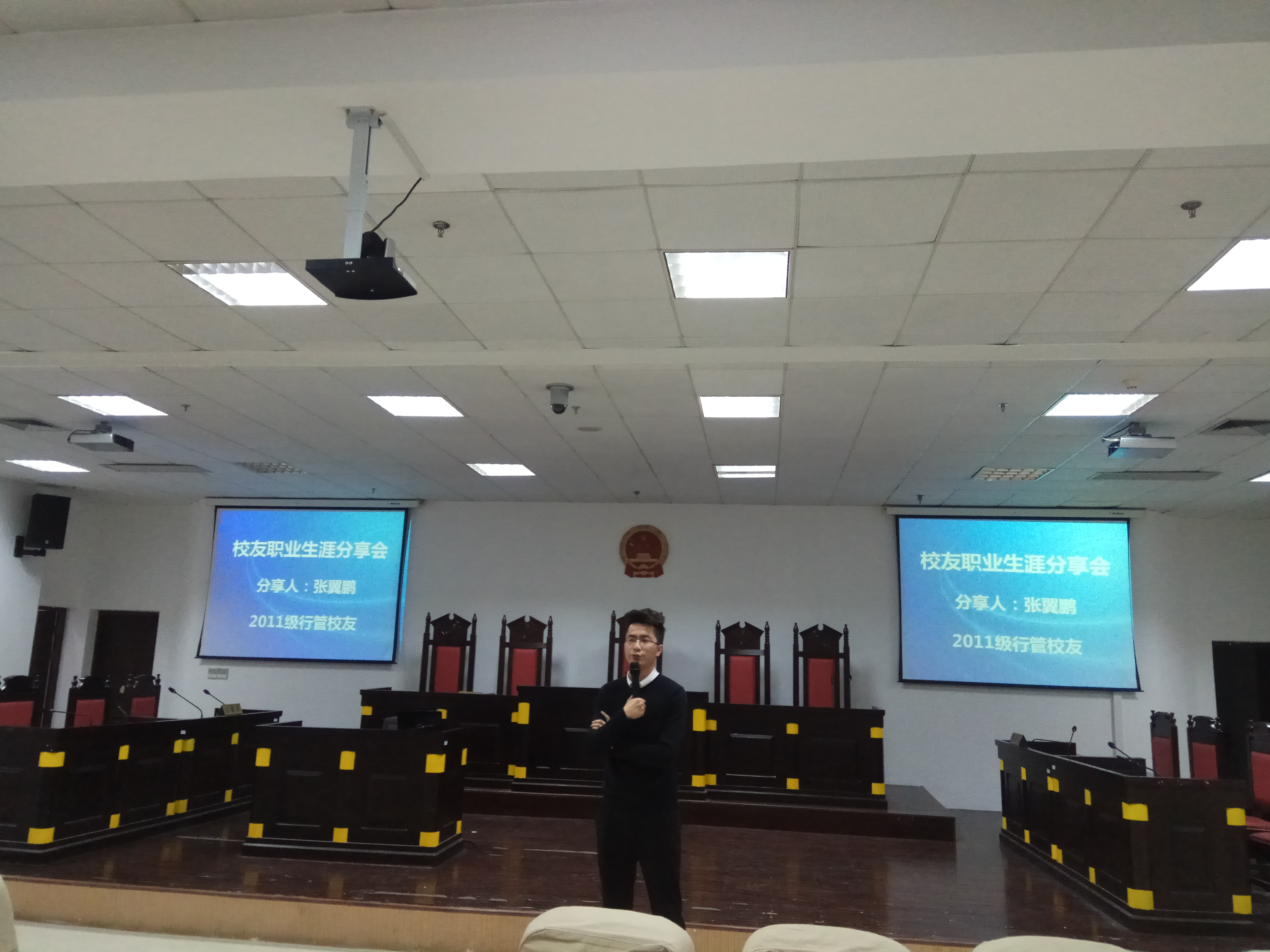 为了加强在校学生与院友的联系交流,帮助在校学生结合院友的工作和发展情况做好学业规划和职业规划,2016年12月19日晚,法政av天堂 举办优秀院友职场经验报告会。av天堂 党总支副书记严玲红、学生科副科长孙德升和白昌科老师以及16级全体新生参加了报告会。