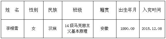 经过一年的预备考察期,经支委会讨论,准备近期召开支部大会讨论李根雪同志转正事宜,现予以公示:公示期限为12月 1日—— 12月7日,如对该同学有异议,请向法政av天堂 辅导员办公室孙德升老师反映,或以电子或书面材料形式反馈意见。
