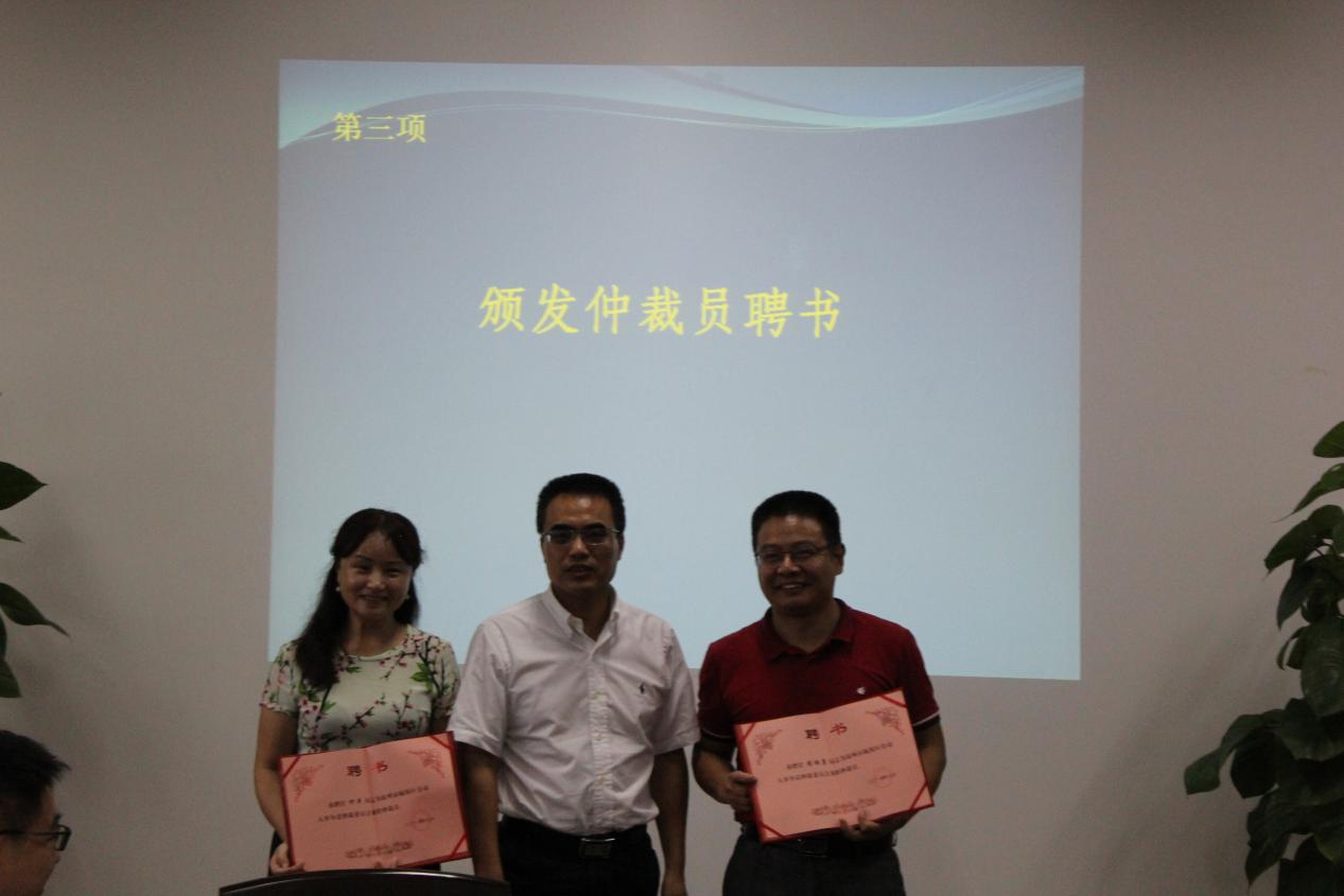 揭牌仪式由法政av天堂 副院长缪心毫主持。瓯海区人力资源和社会保障局局长、瓯海区劳动人事争议仲裁委员会主任陈继林,温州市人力资源和社会保障局法规处副处长王震,瓯海区人力资源和社会保障局副局长、瓯海区劳动人事争议仲裁委员会副主任姜林,还有av天堂 法政av天堂 班子成员及师生代表、温州市人力资源和社会保障局、温州市劳动人事争议仲裁院、瓯海区人力资源和社会保障局、瓯海区劳动人事争议仲裁院等单位代表共30多人也出席。陈继林局长亲自为高教园区高校的仲裁员代表颁发聘书。
