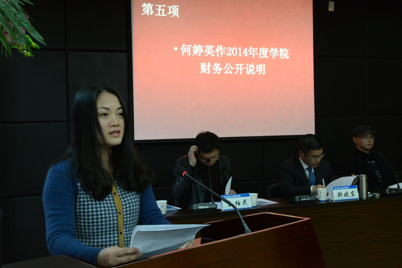 办公室主任何婷英作《2014年度av天堂 财务公开工作报告》。
