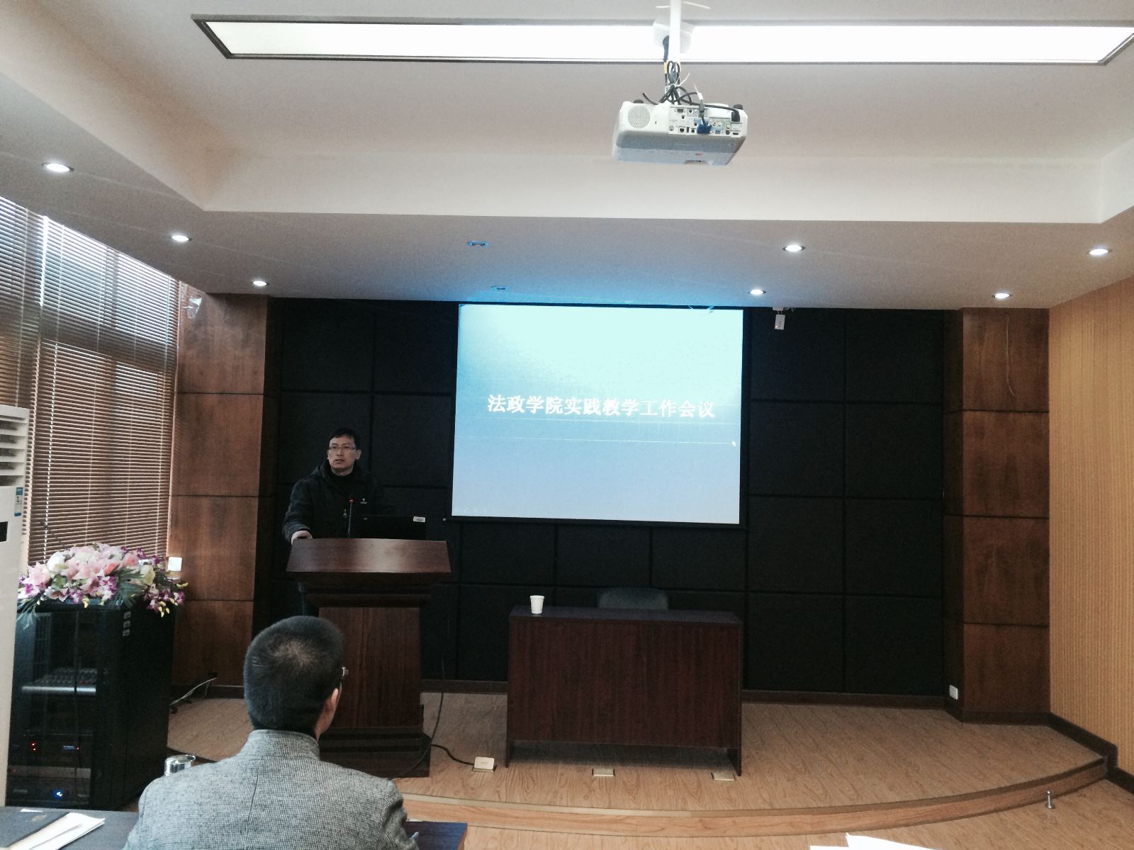 随后,王宗正副院长做《实践教学工作年总结》,本年度实施提升实践教学质量的"四个一"工程:制定"一系列政策文件"、立项"一系列教改项目"、建立"一系列实训平台"、 提升"一系列实践课程"。 一学期来实践教学工作取得很好的成果,学生毕业论文提升明显,实践教学项目及与之配套的系列实践教学活动引起了较大的关注,实训平台以及训练使得学生技能得到很大的提升。思政专业的师范生技能竞赛继续高奏凯歌;法学专业学生参加省首届法科学生法律技能竞赛,获得二等奖2人、三等奖3人的好成绩;法学专业通过省内公开竞争的方式入选了省特色专业,实现了我院专业在省级立项的突破。并提出了明年教学工作的基本思路。