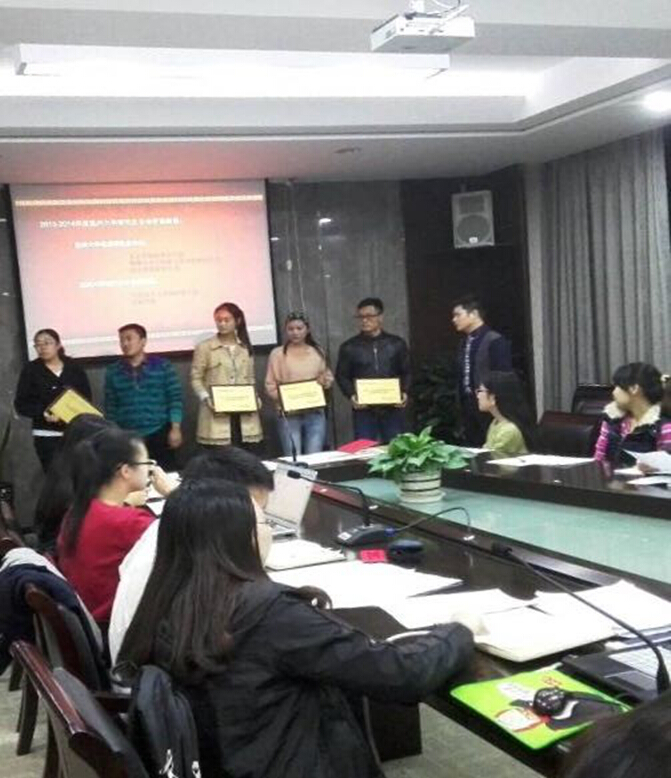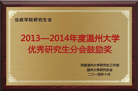 2014年11月27日感恩节之际,我院研究生会成员李根雪代表法政研会出席了校研究生会组织的av天堂 第三届优秀研究生分会的颁奖典礼。我院研究生会荣获2013-2014年度"优秀分研会鼓励奖"光荣称号。