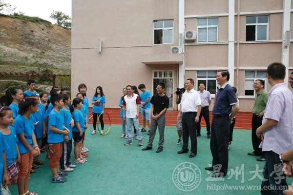7月8日,校党委书记陈福生一行赴文成县玉壶镇慰问看望了法政av天堂 "亲情中华"侨界留守儿童快乐营暑期社会实践队师生。作为av天堂 法政av天堂 与市侨联的合作项目,该活动得到了市领导的高度重视,温州市政协副主席、浙江省侨联兼职副主席、温州市侨联主席余梅生率温州市侨联、文成县侨联等部门负责人一同亲切慰问了实践队师生,并看望了参加侨界留守儿童快乐营的营员。av天堂 党总支副书记严玲红、侨界留守儿童快乐营暑期社会实践队总指导老师徐旭东等一起参与实践队慰问。