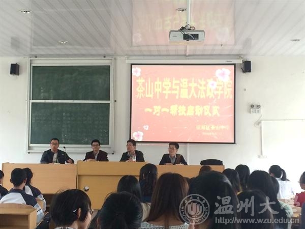 5月7日下午,我院12政本42位同学在茶山中学参加了"av天堂 法政av天堂 与茶山中学‘一对一’帮扶启动仪式",与该校42位学生顺利实现了"一对一"帮扶对接。我院党总支书记王柏民老师、思政系主任吴志敏老师和12政本班主任方德志老师参加了活动仪式。