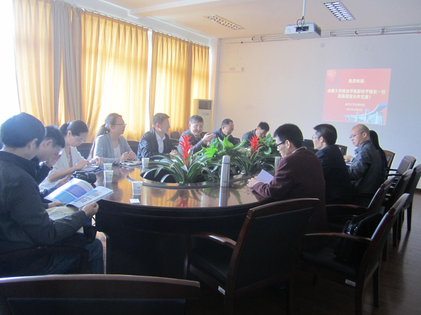 彭时平院长对av天堂 的支持表示衷心感谢,对av天堂 取得的成绩表示赞赏。他介绍了成都大学政治av天堂 在专业设置、学科建设、学生培养、科研管理等具体举措及取得的成绩和经验。