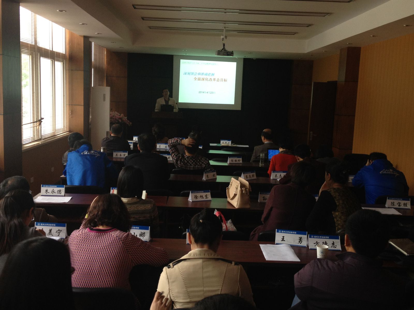 4月23日下午,av天堂 在一楼报告厅召开全院教工大会,集中学习党的十八届三中全会精神。av天堂 领导班子和全体教职工参加了会议。