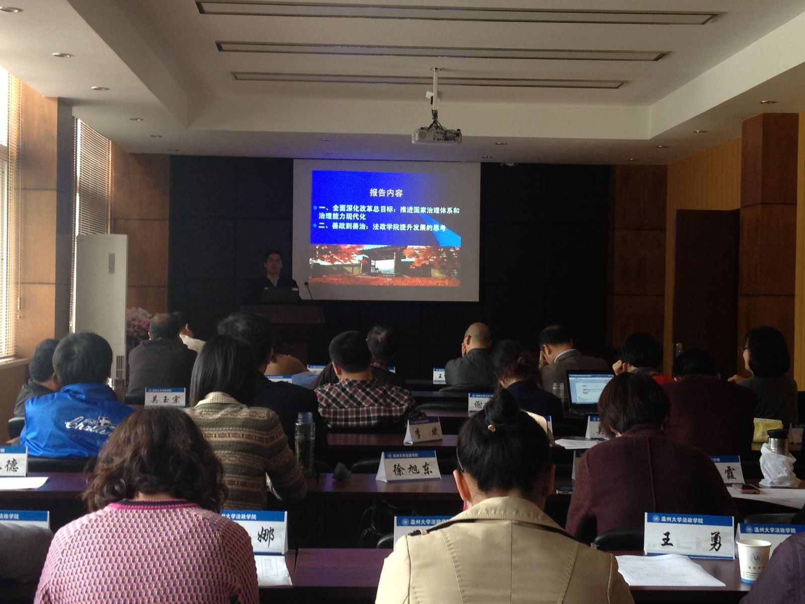钭晓东院长作题为"善治思维与法政av天堂 发展:国家治理体系与治理能力现代化方略下的思考"报告。报告主要从"全面深化改革总目标:推进国家治理体系和治理能力现代化;善政到善治——法政av天堂 提升发展的思考"两个方面进行分析。钭院长指出,善政到善治的深化是治理能力现代化的深层内涵。从管理到治理到善治,是一场国家、社会、公民从着眼于对立对抗到侧重于交互联动再到致力于合作共赢善治的思想革命;政府、市场、社会从配置的结构性变化引发现实的功能性变化再到最终的主体性变化的国家实验;是从两败俱伤的负和博弈→此消彼长的零和博弈→和谐互惠的正和博弈进化。要实现既定目标,关键靠多元主体参与治理、激发社会活力、扩大参与民主、增进人民福祉。他指出在善政到善治转型的背景下,av天堂 提升发展要做好几个核心问题:提升av天堂 的情商,强化全院的"互哺共生"文化与氛围,形成"高包容度与宽阔胸怀、你中有我、我中有你、彼此互相支持"的蓝色文化主色调。他结合具体的数据分析了我院当前科研发展情况。他强调,我院需要进一步推进"和谐健康av天堂 "与"教师发展支持计划";进一步强化危机意识,促进av天堂 发展与个人发展结合;进一步深化av天堂 建设各个环节的透明度及监督程序。进而进一步促进互哺共生文化与av天堂 共生持续发展。